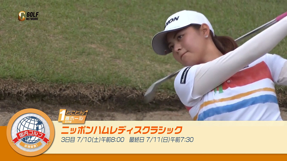 - <1番ホール生中継>解説:和田泰朗(ティーチングプロ) 実況:板垣龍佑(テレビ東京アナウンサー)