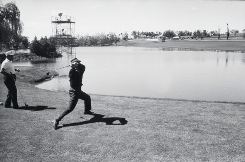 1960年全米オープンでクラブを池に投げ込むトミー・ボルト。(写真提供:Getty Images)