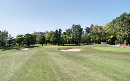 一方、ティーショットを刻んで、右サイドのフェアウェイから100Y前後のセカンドショットを狙う場合でも、プロなら52度あたりのウェッジを使うでしょう。本来ならそれほど難しくはないのですが、和合特有の風と奥行きの小さなグリーンがプレッシャーになります。スピン量の多いウェッジでのショットは、風の影響をうけやすいためです。 セカンドショットの距離を合わせて、ピンハイにつけば、その日の調子は期待しても良さそうです。