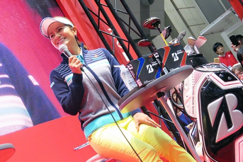 東京ビッグサイトで開催中の『ジャパンゴルフフェア2016』に宮里藍が来場。契約先のブリヂストンスポーツで15時から40分にわたり行われたトークショーには800名を超えるファンが詰めかけた。