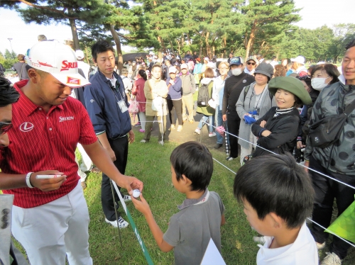 連日、ホールアウト後には30分もファンのサインに応じる松山。ホールアウト後には「自分のベストを尽くせば結果はついてくる。今日も多くのギャラリーが来てくれてプレーしやすかった。明日もたくさんのギャラリーが来てくれると思うので、良いプレーを見せられるように頑張りたい」と意気込みを語った。