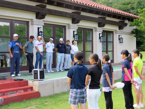 海の日の7月18日(月)、福島県のグランディ那須白河ゴルフクラブにて「ダンロップ・スリクソン福島オープン」のジュニアイベントが開催された。中嶋常幸プロ、山下和宏プロ、星野英正プロ、額賀辰徳プロ、小池一平プロ、稲森佑貴プロ、そして地元福島出身の酒井美紀プロを加えた7名が参加。