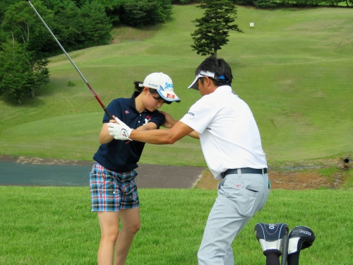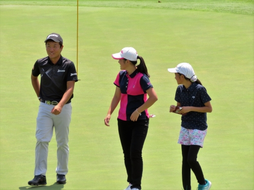 「プロに教わったりする機会はあまり無かったので緊張しました。山下プロにはスイングのリズム感を一定に保つことと、フェアウェイウッドがアッパー気味に当たっているのでしかっりと打ち込むよう教えてもらいました。午後のラウンドで良いショットが打てたので教えてもらった甲斐がありました。稲森プロにはいろんなライからの打ち方やバリエーションのあるアプローチショットを教えてもらい勉強になりました。」