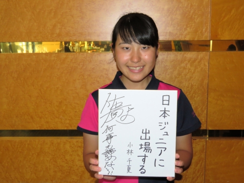 ラウンド後の交流パーティーでは参加したジュニアたちによる「夢発表会」が行われました。小林さんが色紙に書いた夢は「日本ジュニア」出場。