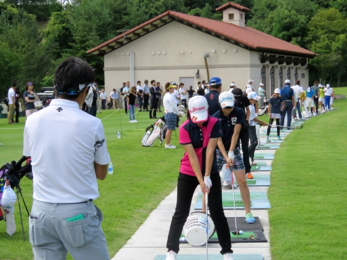プロがジュニアをマンツーマンで指導するレッスン会と9ホールのラウンドレッスンを実施。終了後にはプロを交えた交流パーティーが行われた。