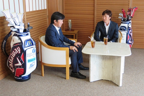 毎月プロ同士の9ホールマッチプレー対決を120分にわたって放送するゴルフネットワークの人気番組「ゴルフ真剣勝負 the MATCH」。9月放送は、クラブ契約が同じという深堀圭一郎と重永亜斗夢のマッチアップが組まれ、8月18日ロイヤルスターゴルフクラブ(千葉県君津市)にて収録が行われた。