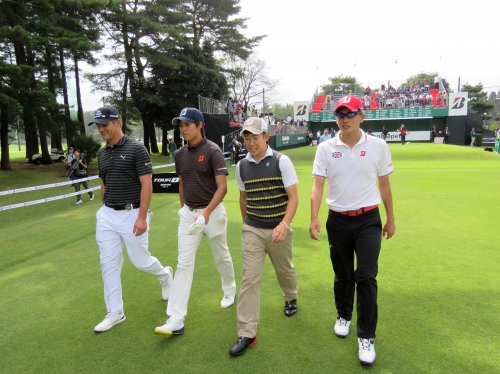 この日は、23歳で同じ年齢という長谷川祥平プロ、アマチュアの青山晃大選手(名古屋市立西陵高等学校2年)、坂本雄介選手(埼玉栄高等学校3年)と練習ラウンドを共にした。