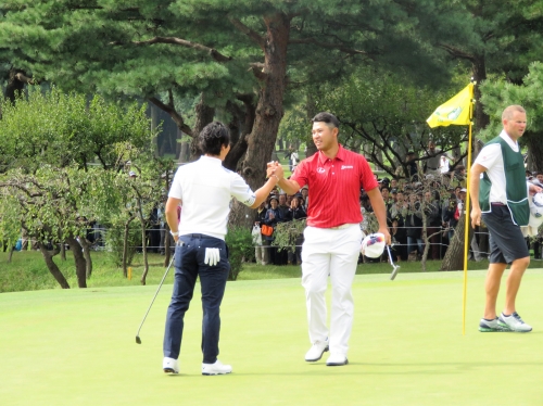 8月の「KBCオーガスタ」優勝を含め、ここ3試合は全て優勝争いに絡みトップ3に入る活躍を見せている石川。11月に開催されるゴルフW杯への出場を決めたことが好調を後押ししているという。