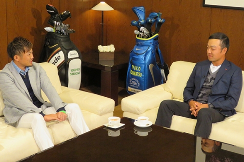 マッチプレー対戦を前に、お互いのキャリアやプライベートなどについての対談を収録。塩見プロは「ゲンちゃん」、時松プロは「先輩」と呼び合う年の差3歳差の二人は、奇しくもプロデビューが同じ2012年でした。