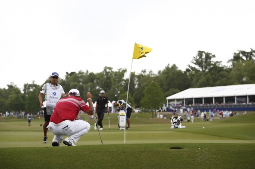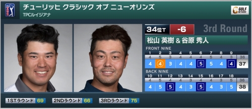 1つのボールを2人が交互に打ち合うフォアサム方式で行われた「チューリッヒクラシック」3日目、23位タイからスタートした松山英樹と谷原秀人のペアは1バーディ、4ボギー「75」とスコア落として通算6アンダーの34位タイに後退。3日目カットライン上となるギリギリで最終日へ望みを繋いだ。