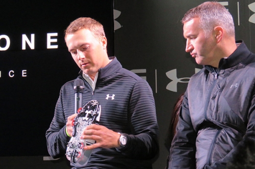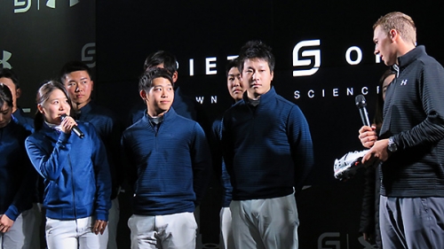 1/17現在世界ランキング5位で、先日のソニーオープンインハワイで単独3位フィニッシュするなど今シーズン調子を上げてきているメジャー王者のジョーダン・スピースが緊急来日し、都内で行われた契約メーカーのアンダーアーマー新商品発表会に登場した。