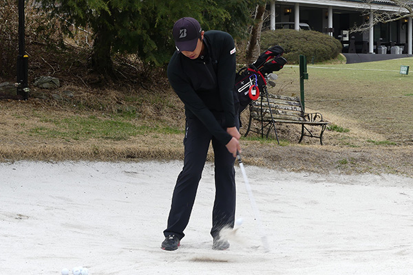 また、この打ち方ならば、それなりに飛距離も出せるし、SWからAW、AWからPWと、クラブを持ち替えることによってさらに遠くへ飛ばすこともできます。まずはこれがバンカーショットの基本だと思ってしっかりマスターしてください。「ランを少し押さえたい」などの応用編は、次回じっくりご説明します。