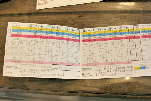 一番古いカードは2006年の1月、当時のホームコースでの打ち初めのスコアカードです。このときのスコアカードを見ると……、フロントナインは寒くてノーバーディ、ダボもあって43だったけど、バックナインは2ホール目で初バーディが来て、6ホール目は2打目のピッチングウェッジがビタッと付いて二つ目のバーディ、結果37と巻き返したなーとか、スコアカードを見るといろいろなことが鮮明に思い出せるわけです。