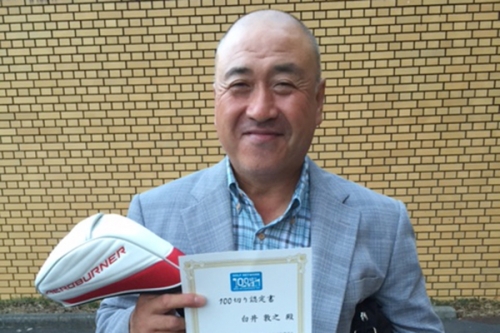 午後4時30分頃に全選手がホールアウト。結果、今会場での100切り達成者は23名となりました。今年の100切り選手権開催会場の中でも、難易度が高いコースと言われるだけに、ホールアウトしてくる選手たちからは疲労の表情が多くみられました。その中でも、昨年(スコア110という結果)のリベンジを見事に果たした、白井さんに終了後に喜びの声をお聞きしました!