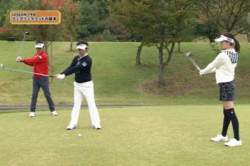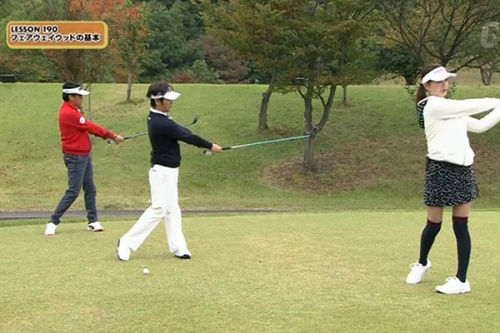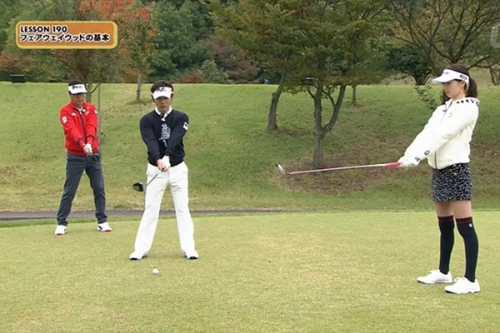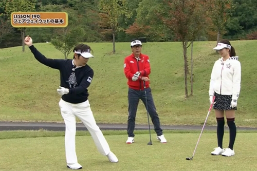 ゲストの三枝さんは、このドリルで上下動が減り、フェアウェイウッドでナイスショットを連発。