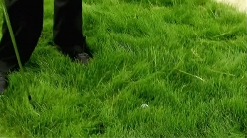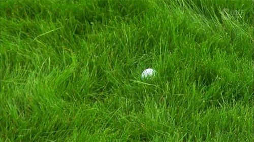 深いラフに入ったら、しっかりライをチェックしどんなショットが打てるのかを判断します。