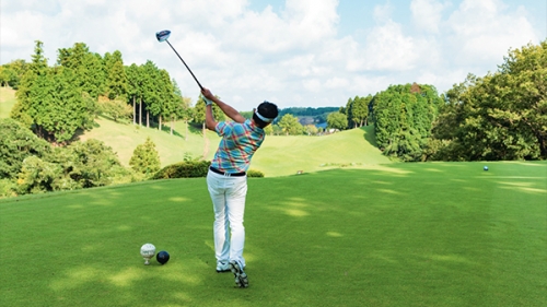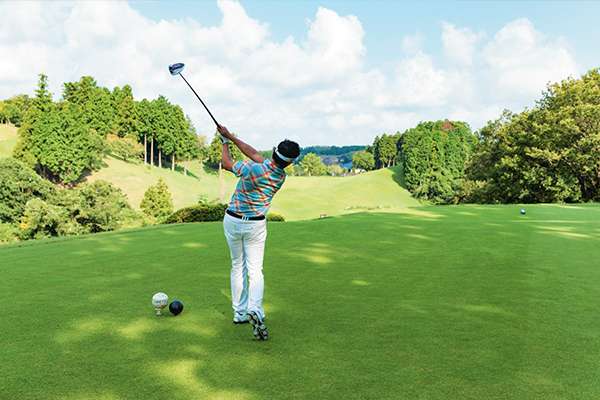 100打ちの人のほとんどは「リキみすぎ」。リラックスしたアドレスから、力を抜いたスイングを試してください。力の入れ具合もリズムもこれじゃ頼りない、遅いと感じるくらいでOK。手先を使うとリキんだり速くなってしまうので、カラダを回すことを意識する。こうすると力を抜いてゆっくり振れます。