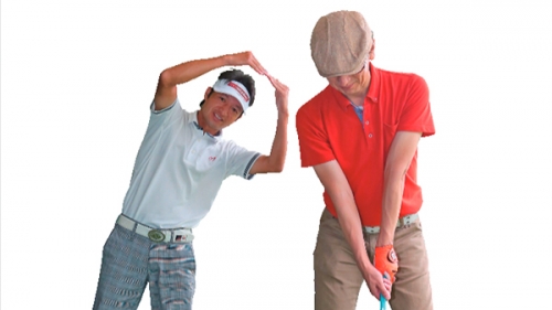 このミスを防ぐには、まずクラブを持たずに腕を垂らして、左右に振ってみてください。これで肩や腕のムダな力が抜けて、関節が軟らかくなります。構えるときには、右ヒジを右ワキ腹方向に軽く曲げましょう。こうするとリキみが簡単に抜けて、右ひじのたたみもスムーズになります。