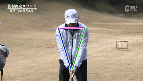 さらに、田村プロはすべての位置で直角にとらえるために、共通のアドレスをとっています。ドライバーからパターまで基本的には同じアドレスで構えるという田村プロ。少ない練習時間の中では、1つのスイングで打っていけるというのが利点になるということです。