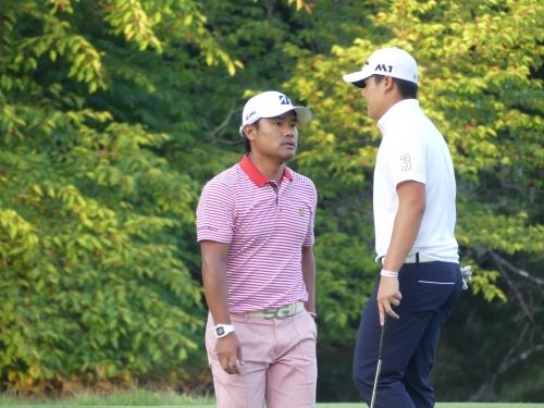 2ホール目以降はパーで切り抜ける我慢比べの展開に。3ホール目でA・ブランドがボギーで脱落すると、続く4ホール目では小林が2打目をグリーン奥の木の根元に打ち込み、左打ちで脱出を試みるも池に入れて脱落。残り1枠をかけた戦いは宮里と任成宰のマッチプレーの様相に。