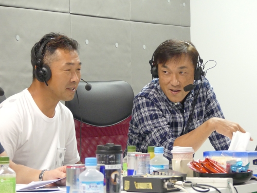 「プロゴルファーがゲストで来てもらえると自然とテンションも上がってしまう」という佐藤プロ。久保谷プロとは全米オープンに続いて2回目とあって、掛け合いもバッチリ。「中継で見るポイントや考えていることも同じだから微妙な選手心理も共感できて喋りやすかった」と感想。