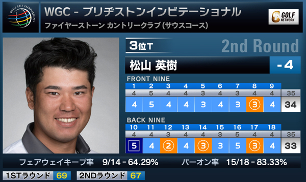 松山英樹 WGC-ブリヂストンインビテーショナル 第2日ハイライト(8H)