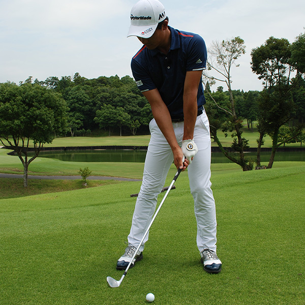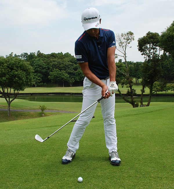 もちろんこれはイメージの問題で、胸を右に向けたまま打てといっているわけではなく、それぐらいの意識を持ってインパクトを迎えなければいけないということです。体が開くことがなければ、スイングの軌道も狂いにくいし、正しいハンドファーストでボールをとらえることができるので、ロフト通りの弾道と飛距離が実現します。