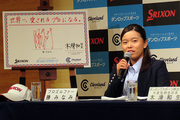 ダンロップスポーツ(株)は11日、都内で会見を行い、7月に行われた日本女子プロゴルフ協会(LPGA)最終プロテストに合格した勝みなみとゴルフ用品使用契約を締結したことを発表した。