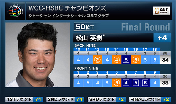 松山英樹 WGC-HSBCチャンピオンズ 最終日ハイライト(14、16H)