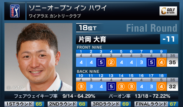 片岡大育 ソニーオープン イン ハワイ最終日ハイライト(14、17H)