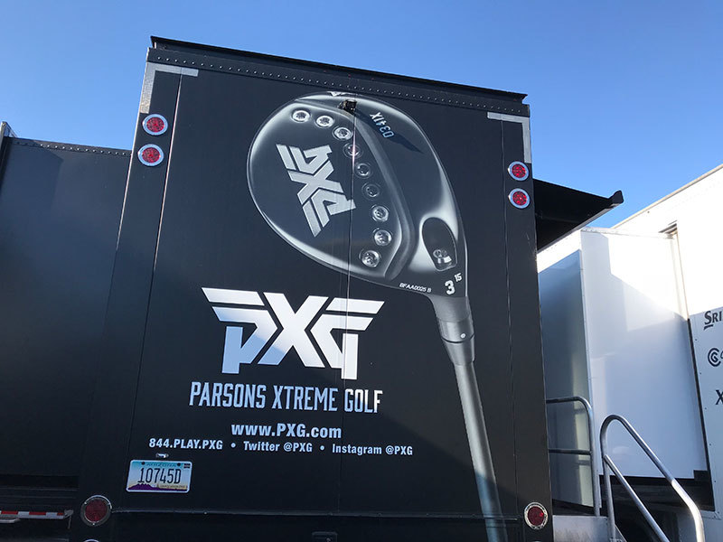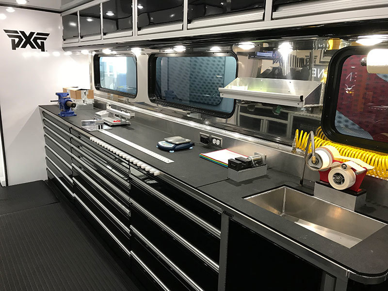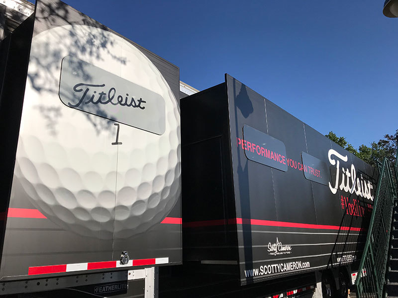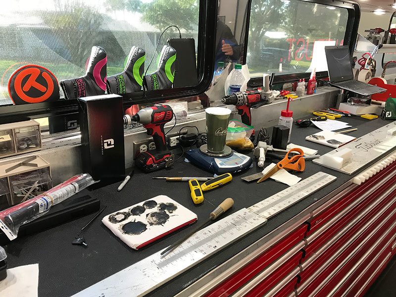 『ツアーバン』とは・・・試合に帯同しコースやプロの希望に合わせてクラブを調整する、調整できる設備を備えたトラック。なかなか普段は足を踏み入れることができないんで・・朝から興奮。最初は『タイトリスト』さんのツアーバン。