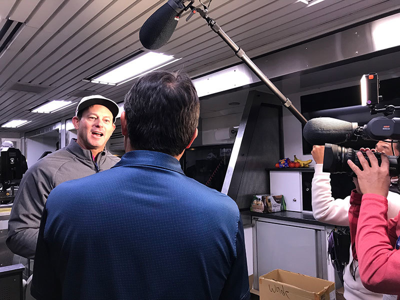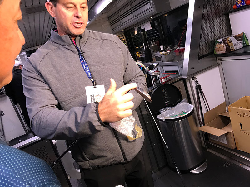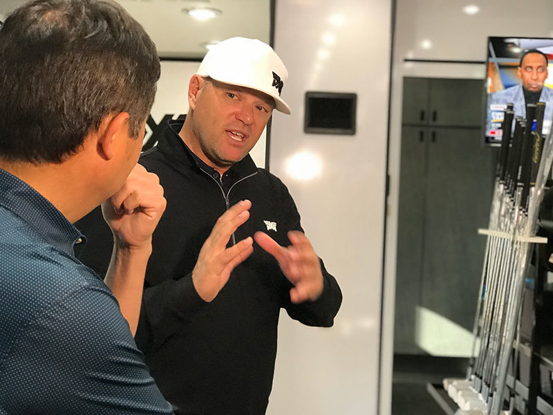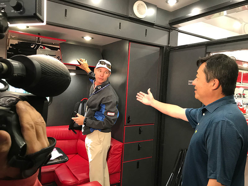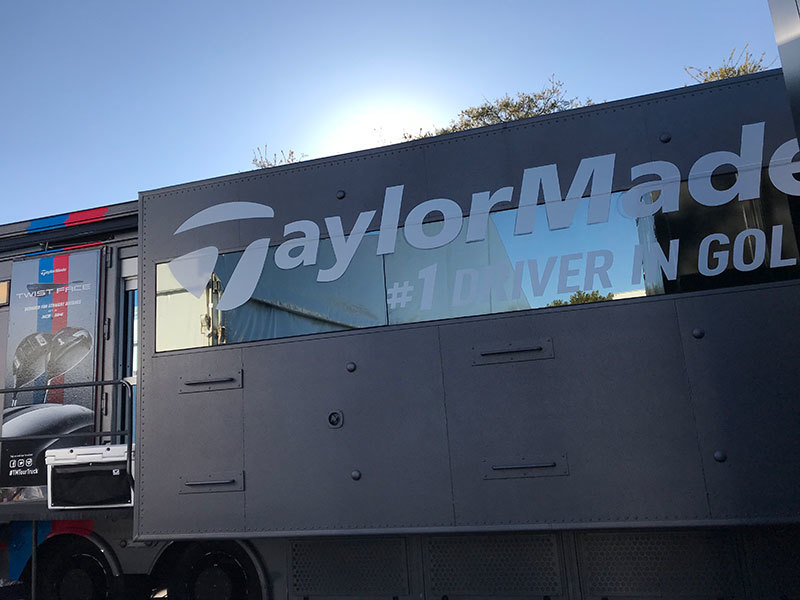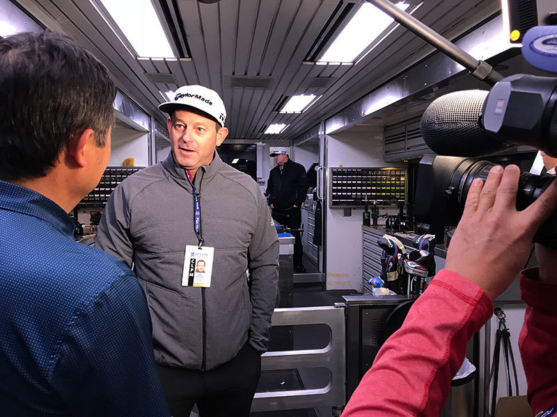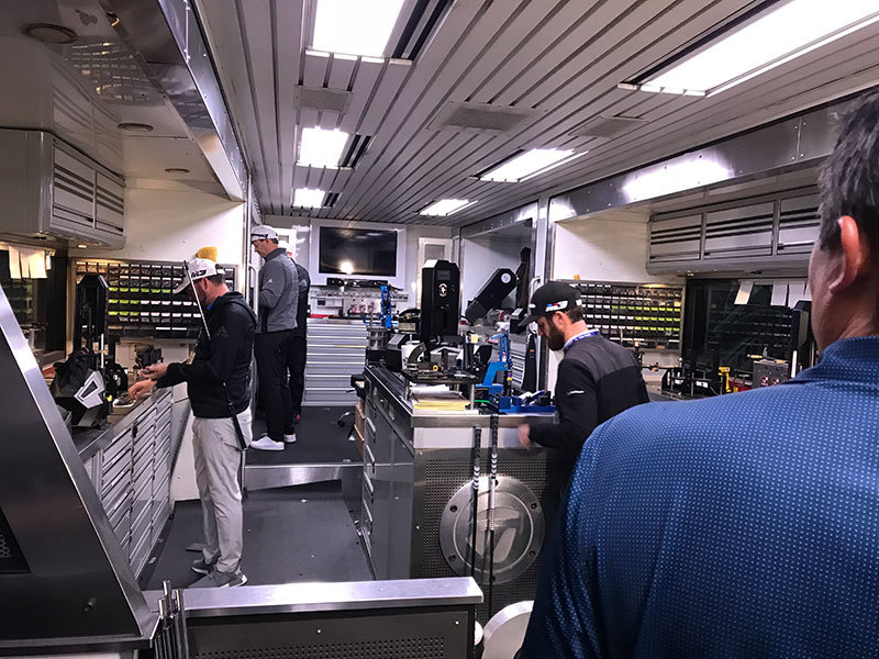 続いてアンディさんについていった先は「テーラーメイド」さんのツアーバン。内装がちょっと近未来的な雰囲気。バンの中にもメーカーさんのカラーが出るんですね