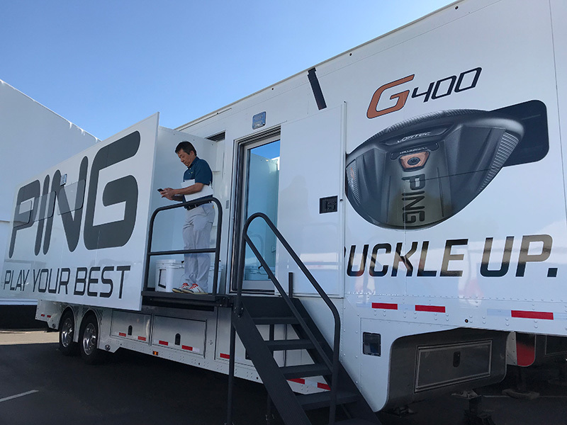 バンの中央のキャディバックには、しっかりとパーマーさんがいらっしゃいました。