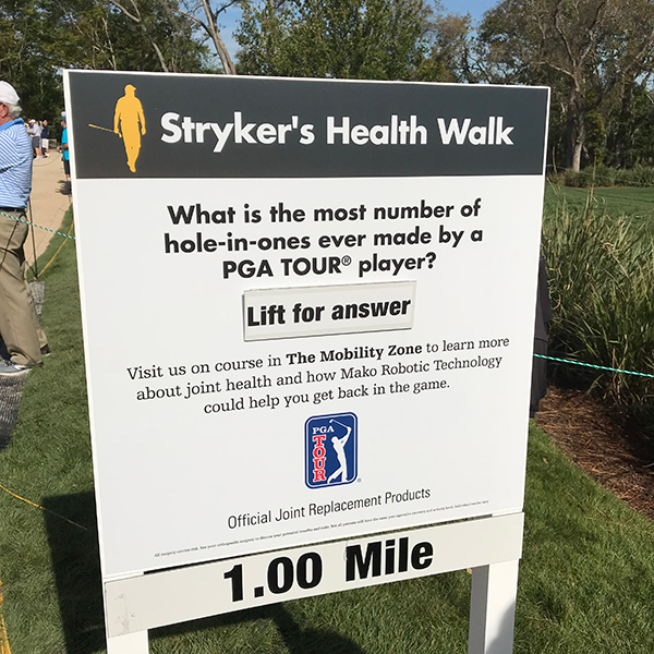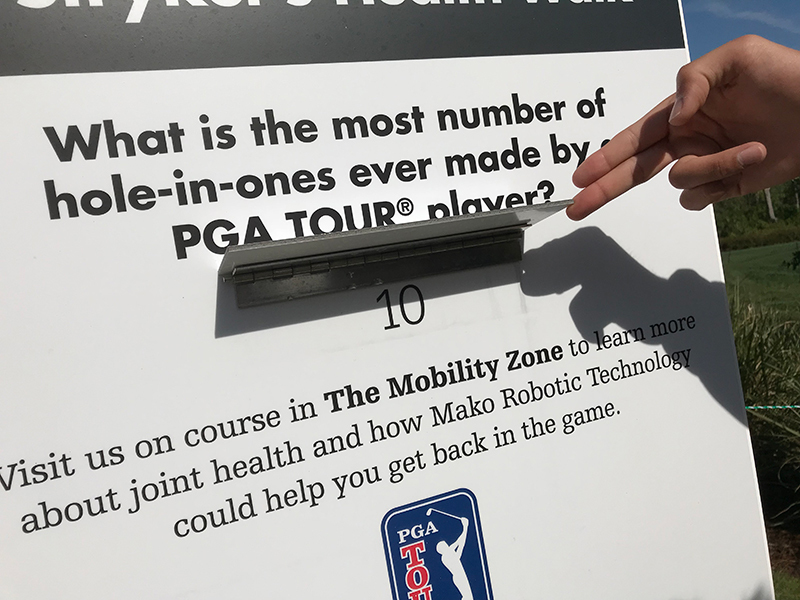 PGAツアーに関するクイズの看板なんですね。PGAツアーで最もホールインワンを記録した選手は何回ホールインワンをした??