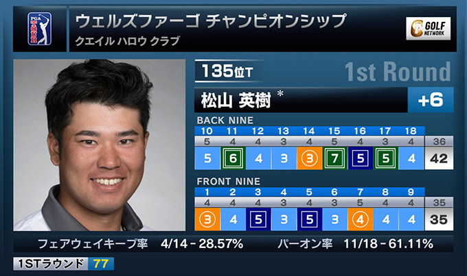米男子ツアーのウェルズファーゴ チャンピオンシップ(現地時間3日/ノースカロライナ州 クエイル・ハロー・クラブ)第1ラウンドが終了。