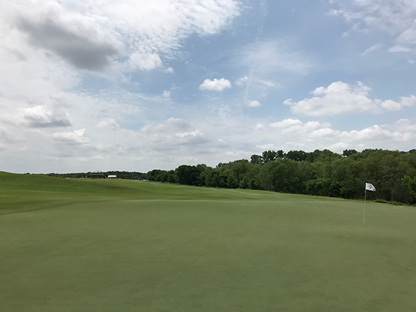 あごが高いバンカーばかりなのでグリーンの奥から振り返るとバンカーは全く見えません。