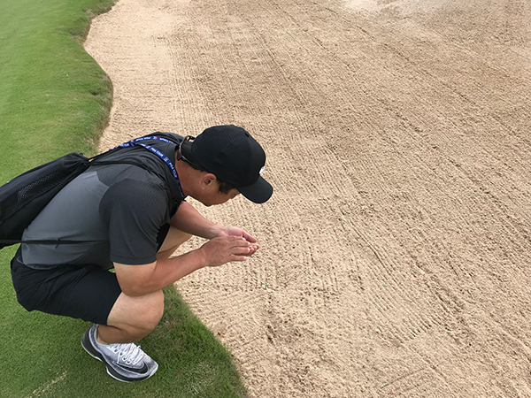 バンカーはほとんどがあごの高い。ですが選手を苦しめる要素にはならないだろう、と。