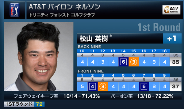 米男子ツアーのAT&Tバイロン・ネルソンチャンピオンシップ(現地時間17日/テキサス州 トリニティ・フォレストGC)第1ラウンドが終了。松山英樹は2バーディ、3ボギーの1オーバー72で回り、120位タイで初日を終えた。