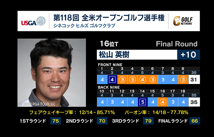 通算10オーバー16位タイで全米オープンゴルフ選手権(現地時間17日/ニューヨーク州 シネコックヒルズGC)を終えた松山英樹が、現地リポーターを務める杉澤伸章氏のインタビューに答えた。