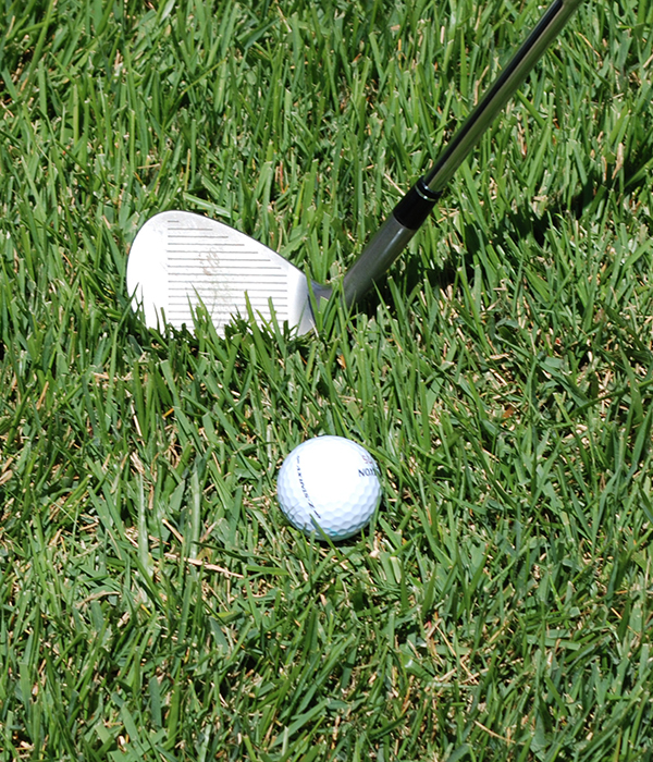 基本的にロブショットができるのは、フェアウェイでもラフでもボールが芝に浮いていて、地面とボールとの間に隙間があるとき(写真①の向かって右側のボール)。同①の左のボールのように沈んでいてヘッドを入れる場所がない場合は、ロブショットは諦めることが大切です。