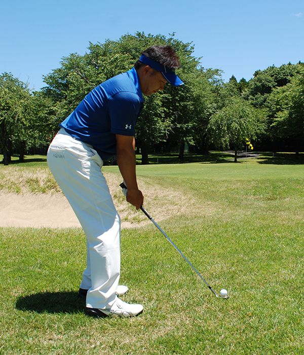 また、ボールが浮いていても逆目の場合は要注意(同②)。逆目の場合は、ヘッドが芝の抵抗を受けることがあり、その分距離感が狂うからです。