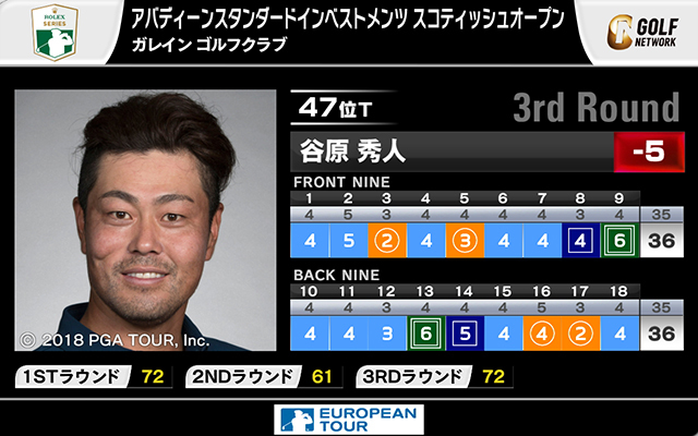 欧州ツアーのロレックスシリーズ第5戦 アバディーンスタンダードインベストメンツ スコティッシュオープン(現地時間14日/スコットランド ガレインGC)第3ラウンド後に谷原秀人(通算5アンダー47位タイ)がインタビューに答えた。