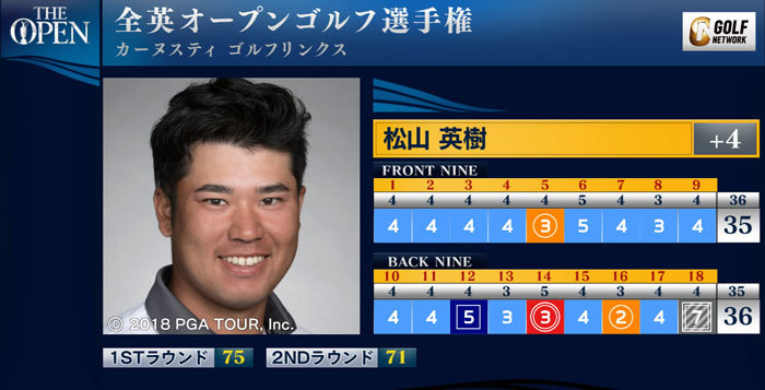 松山英樹が、全英オープンゴルフ選手権(現地時間20日/スコットランド カーヌスティ・ゴルフリンクス)第2ラウンド後にインタビューに答えた。松山は予選通圏内の通算1オーバーで最終18番を迎えたが、ラフからの2打目を左に曲げてしまいOBとなり、トリプルボギーを叩き、通算4オーバーで予選落ちとなった。