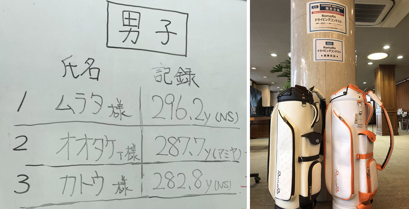 今年も会場ではRomaRoの新製品をお試し頂ける試打会を開催。また、琵琶湖会場限定企画として、RomaRoドライバーの飛びを実際のコースで体感できる「ドラコン大会」を実施。“トラックマン(弾道測定器)”による飛距離測定の結果が最も良かった方にRomaRoのキャディバッグが贈られるドラコン大会を見事に制したのは、京都府から参加の村田靖司さん。「296.2ヤード」という男子プロ並みの飛距離で周囲を驚かせました!