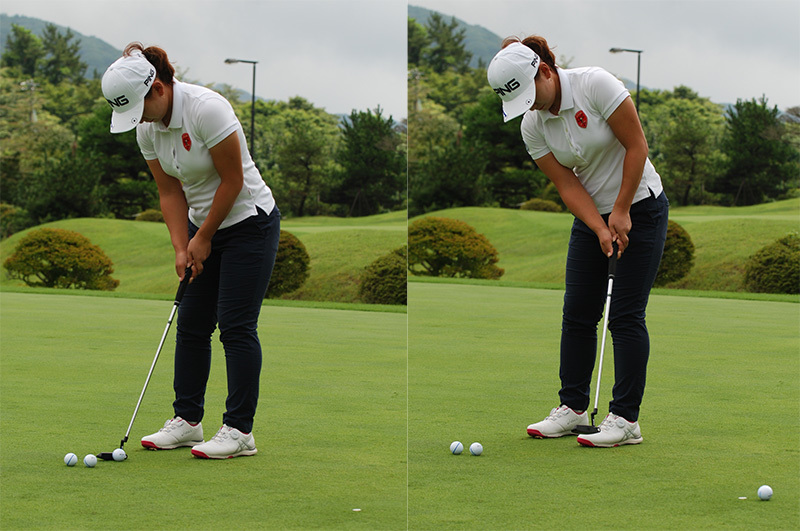 これをやっておくことで実際のラウンドにおいてラインを読むとき、「ここを狙う」という意識が明確になります。その結果、「入る入らない」は別として、自信を持ってカップを狙うことができるようになります。