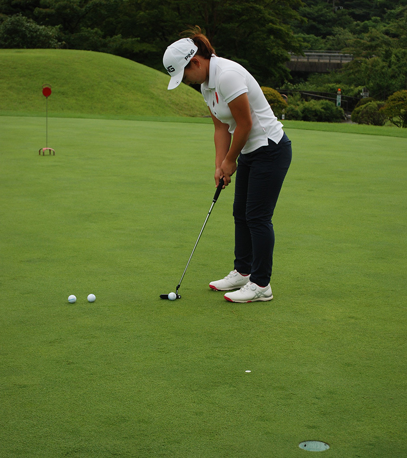皆さんもご存じの通り、ゴルフはパッティングが大事。プロになってそのことを痛感したこともありますが、普段の練習はもちろん、ラウンド前も(私の場合、試合になりますが)しっかりパッティング練習を行うようにしています。