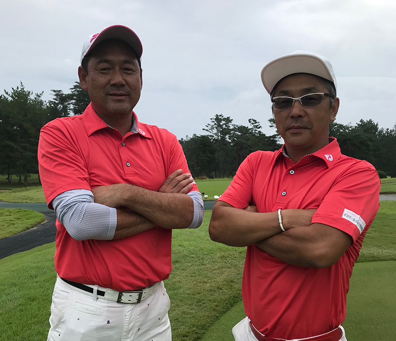 地元・兵庫県から参加の齋藤文彦さん・岩谷秀樹さんチームは、バーのマスターと常連客というレアなチーム構成。「チームを組んで2年目。ゴルフネットワーク選手権への挑戦も2年目です。昨年より上を目指して頑張ります!楽しんできます!」と笑顔でスタートしていきました。
