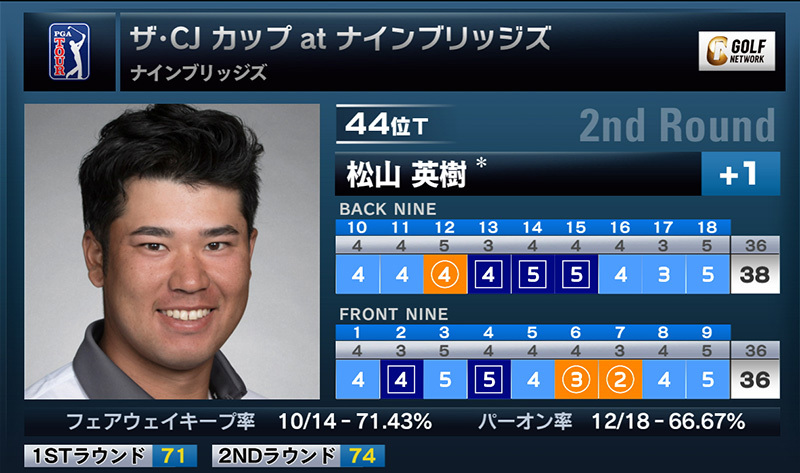 米男子ツアーのザ・CJカップ at ナインブリッジズ(現地時間19日/韓国/ナイン・ブリッジズ)第2ラウンドが終了。松山英樹は3バーディ、5ボギー「74」のラウンドで、通算1オーバー44位タイで2日目を終えた。