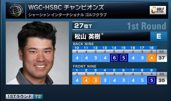 世界ゴルフ選手権(WGC)シリーズのWGC-HSBCチャンピオンズ(現地時間25日/シャーシャン インターナショナルGC/7,261ヤード・パー72)第1ラウンドが終了。松山英樹はイーブンパー27位タイとなった。