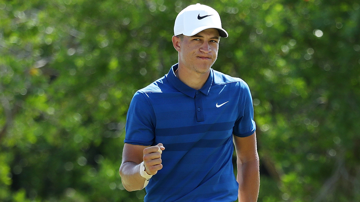 チャンプは昨季ウェブ・ドット・コム・ツアーのドライビング・ディスタンス王(平均343.1ヤード)で、優勝したユタ選手権初日には430ヤードもぶっ飛ばした。今季から米男子ツアーに本格参戦でこれまで4試合に出場。平均飛距離は335.2ヤードで堂々の1位だ。